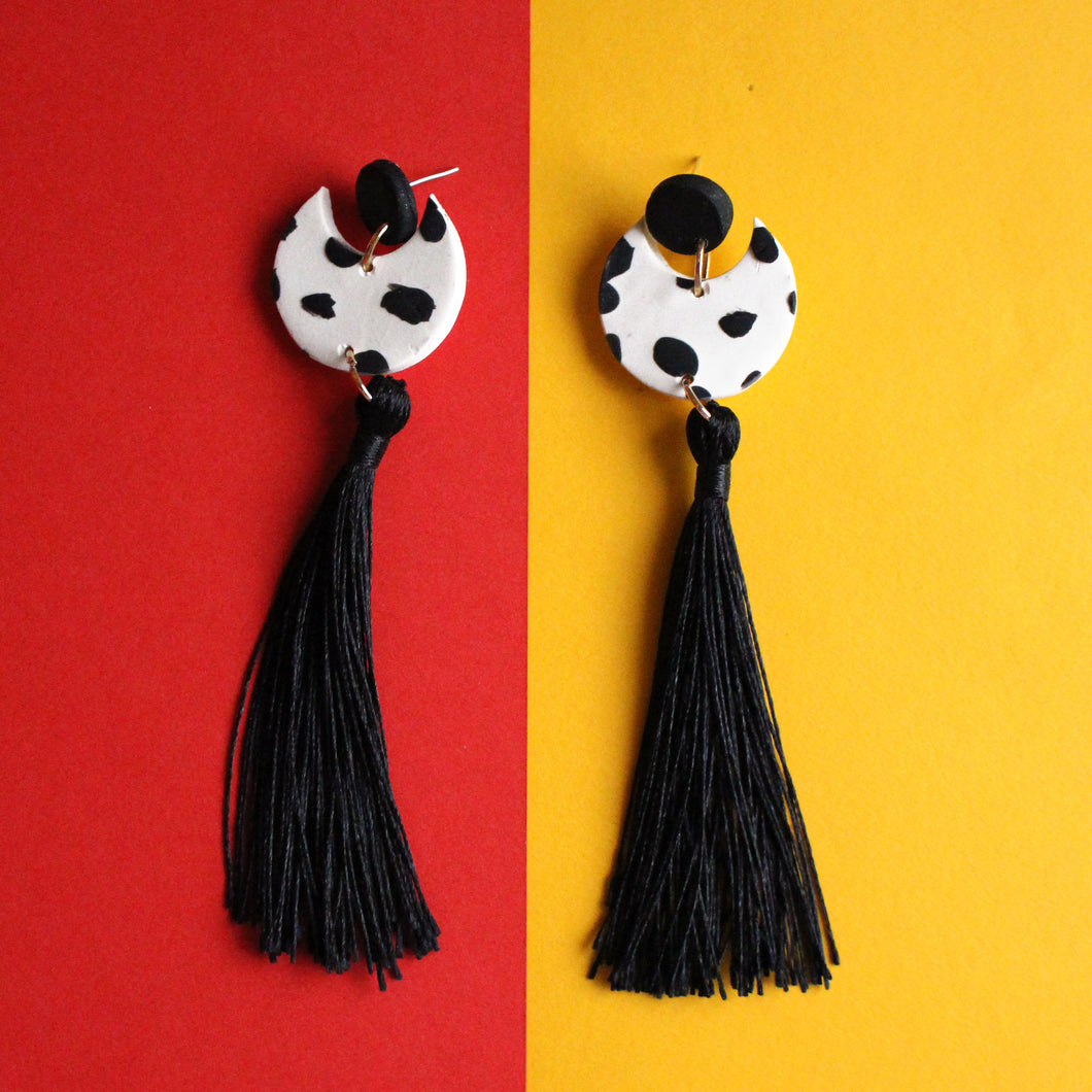 Polymer clay earrings made with Dominican amber stones 14k gold jump rings and earrings post.